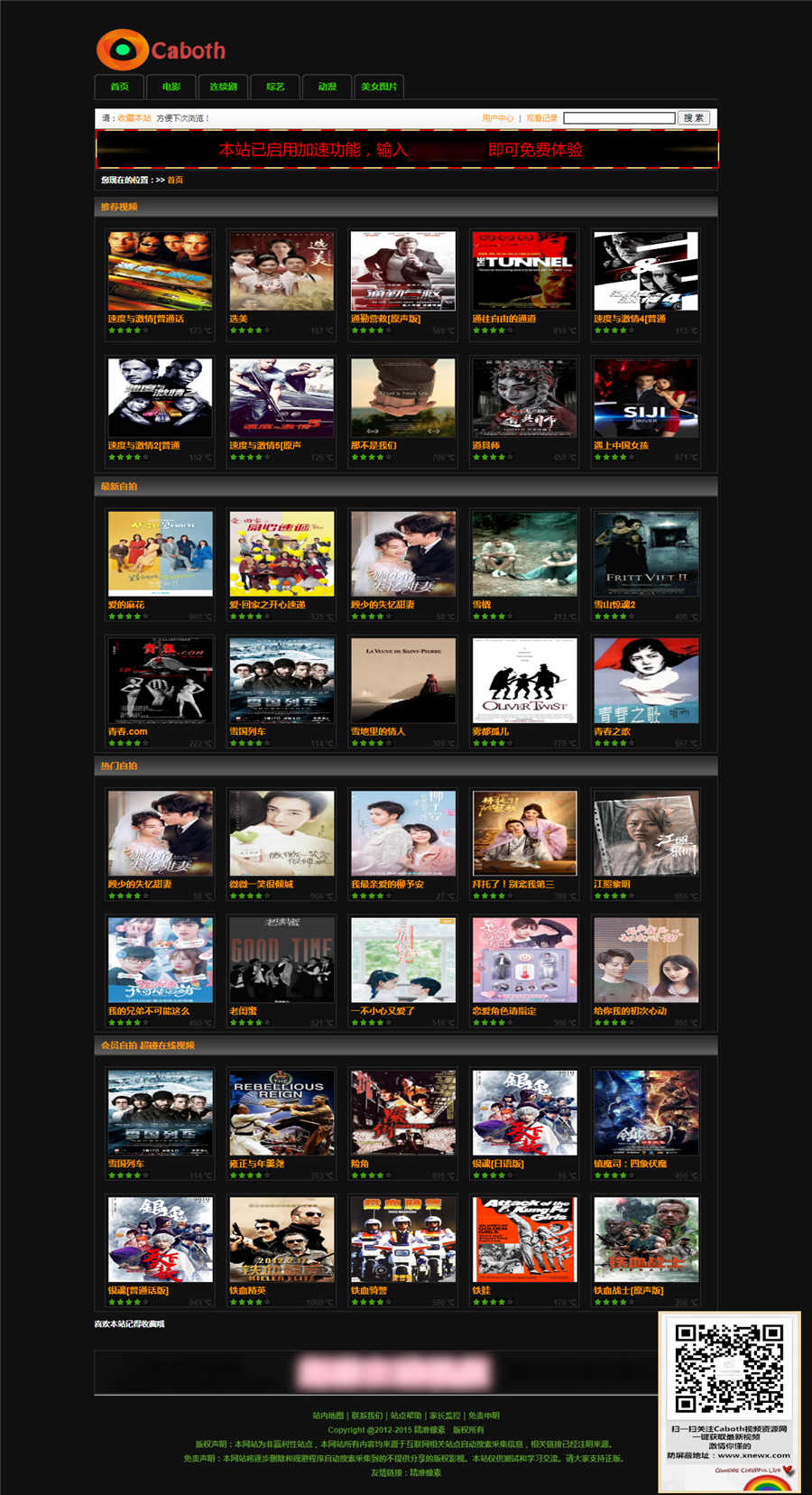 苹果CMSV8版本caboth黑色风格主题模板,只有电脑端,黑色风格,复古简约风格,模板非常简单,只有影视模块,自带许多广告位。