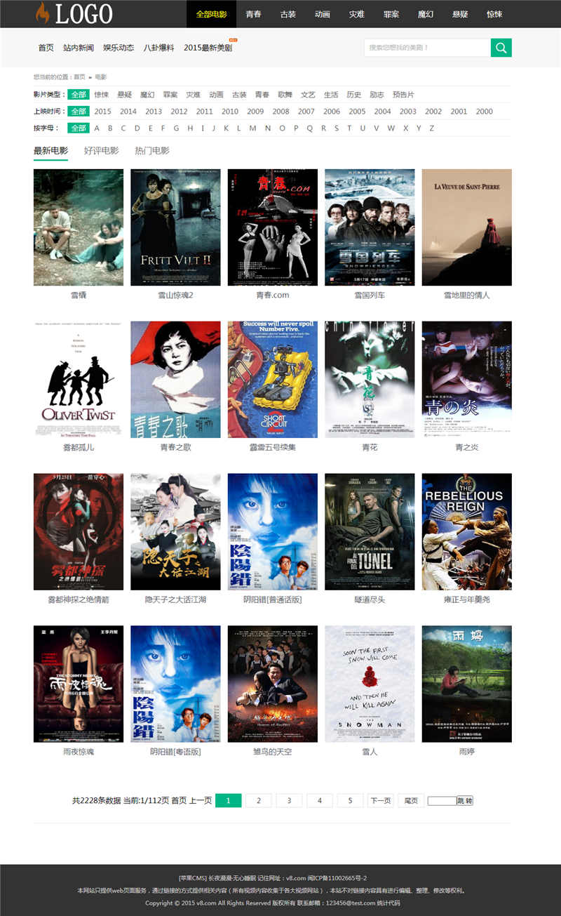 新闻影视主题苹果CMSV8免费模板,主打新闻和影视的主题模板,电脑端,绿色风格,简洁的风格布局,利用优化和二开。