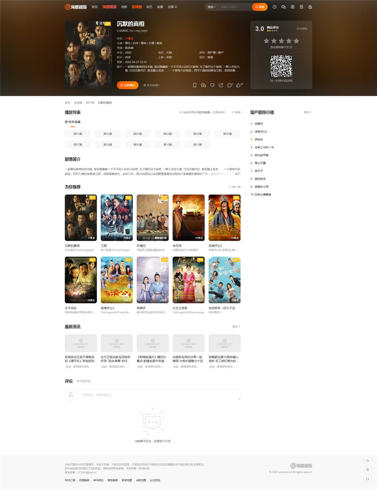 最新苹果cms海螺主题模板V3.1,自适应手机端,苹果cmsv10版本,半破解去授权版,已测试完美无错。