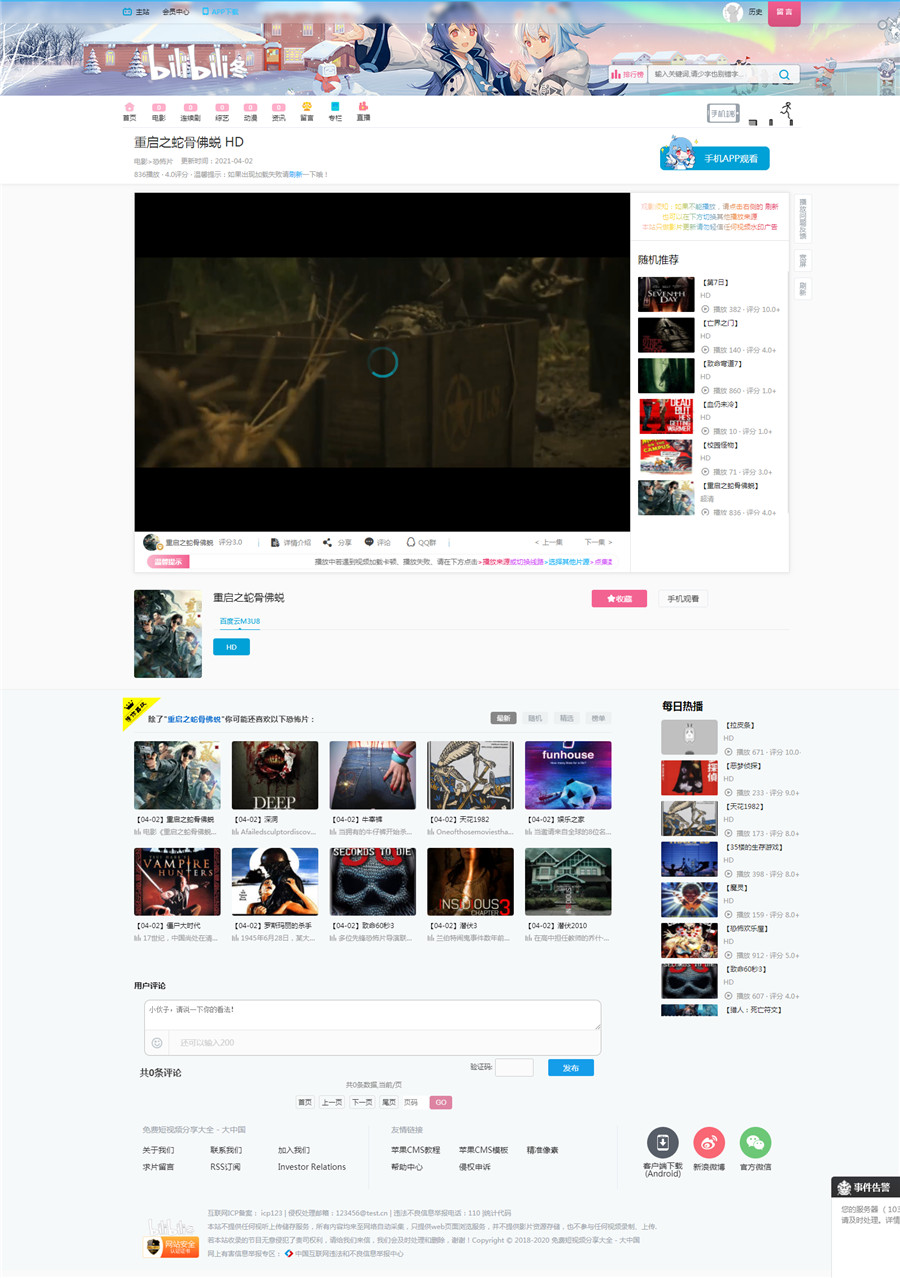 苹果CMS仿bilibili动漫二次元模板,带电脑端+手机端,两端分离,不是自适应,苹果CMSV10版本。
