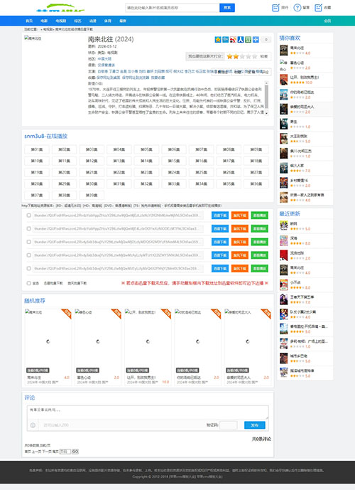 首页为经典蓝色简约设计,带pc、wap模板文件夹,适合于影视网站,内容页支持下载功能!