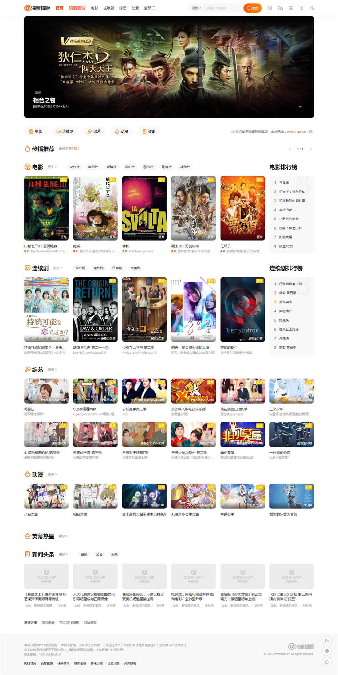 最新苹果cms海螺主题模板V3.1,自适应手机端,苹果cmsv10版本,半破解去授权版,已测试完美无错。