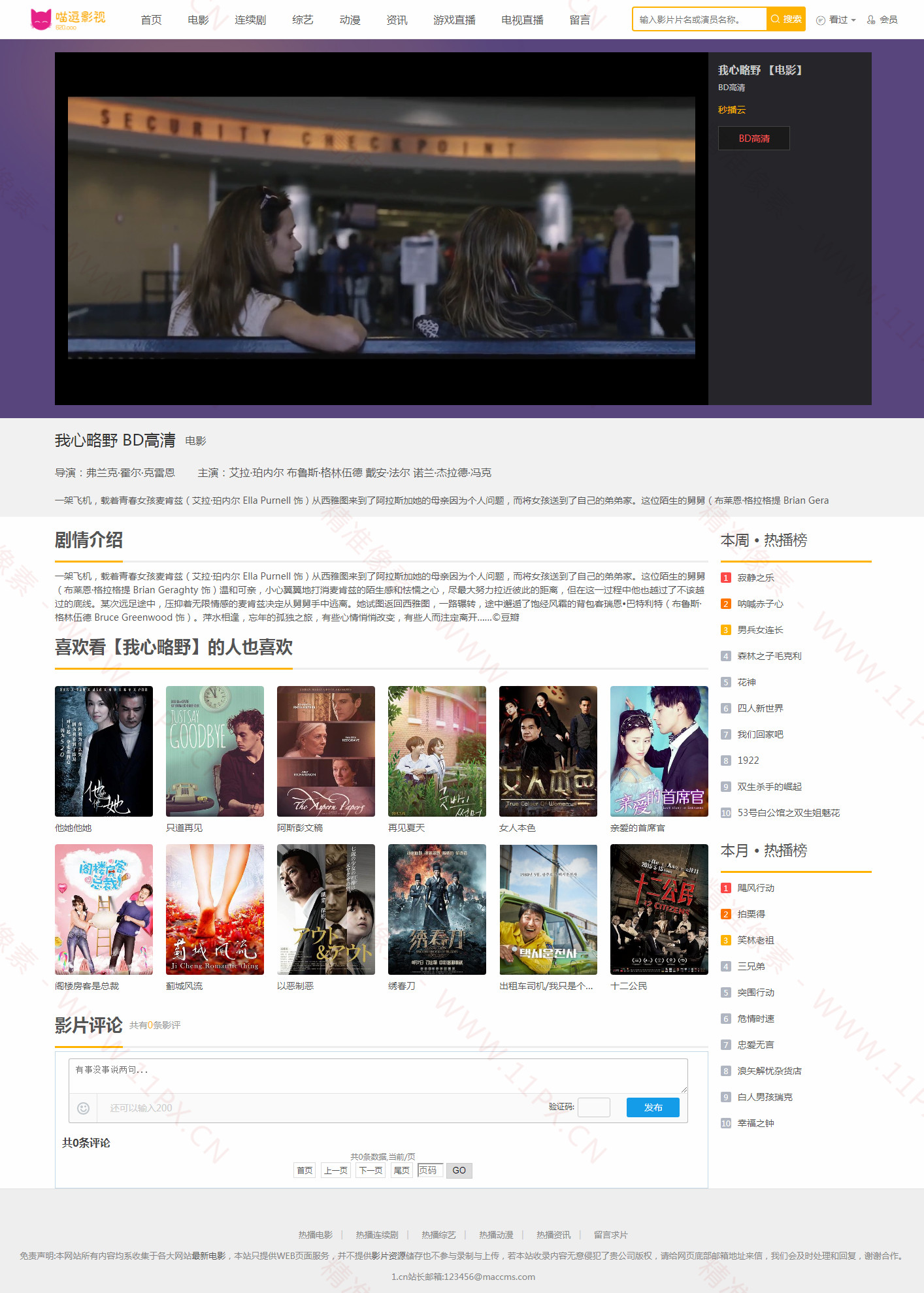 已测试苹果CMSV10喵逗影视模板,基于苹果CMSV10系统开发,网站模板分为首页、列表页、内容页、播放页。