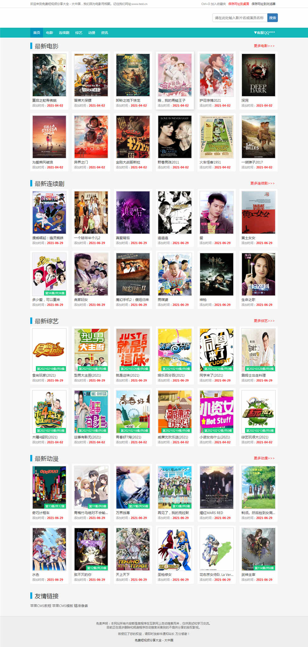 一款仿西瓜影院模板,苹果cmsv10版本,绿色清爽简洁风格,自适应模板多终端,已测试完美无错。
