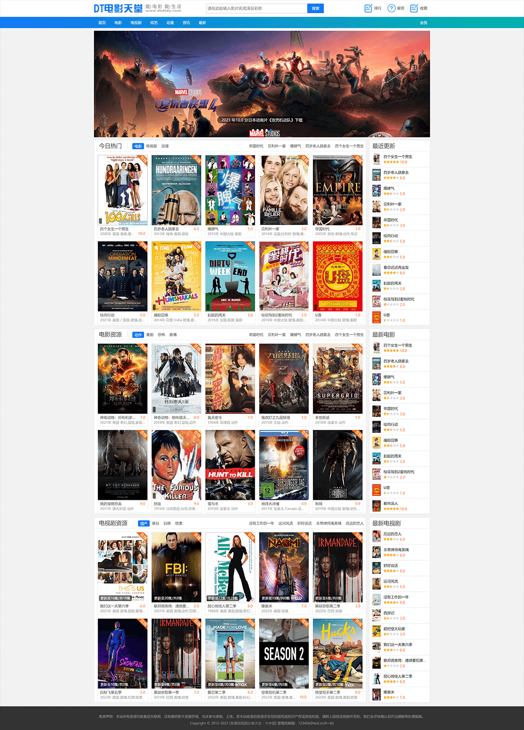 支持影视专题、影片评论、留言本、迅雷下载插件、用户中心